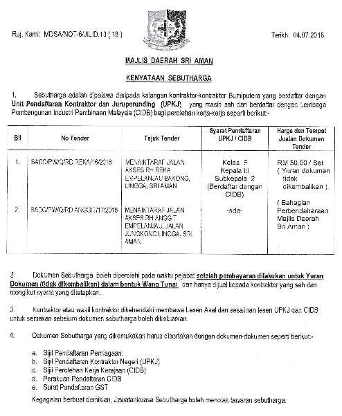 Senarai Kontraktor untuk Kerja - Kerja Pembersihan Longkang