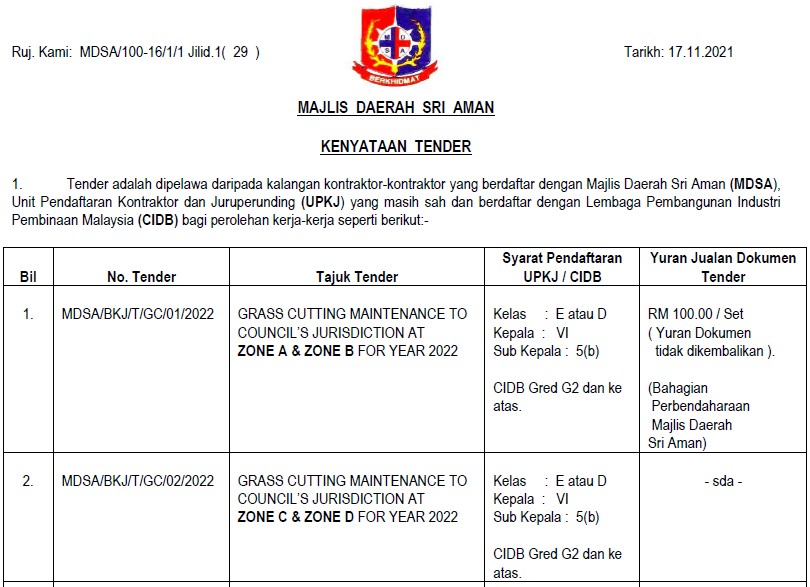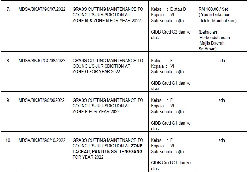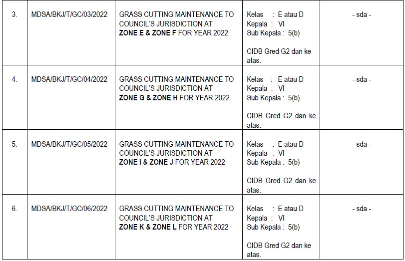 Senarai Kontraktor untuk Kerja Penyelenggaraan Tepi Jalan
