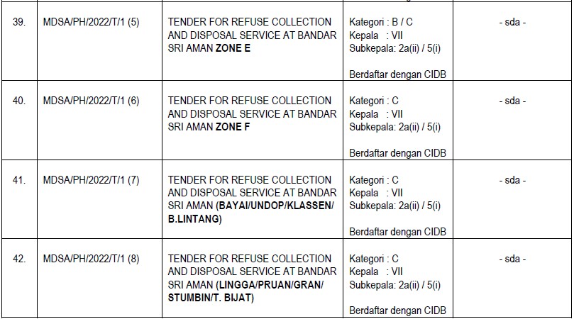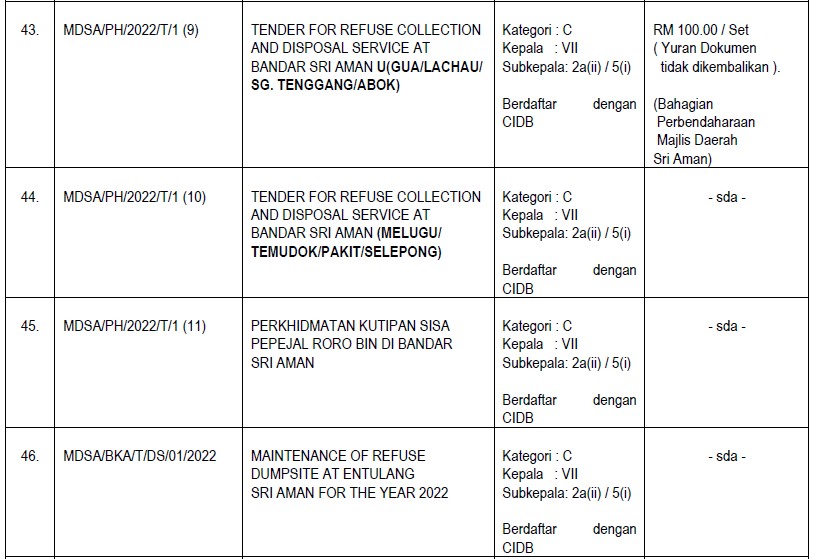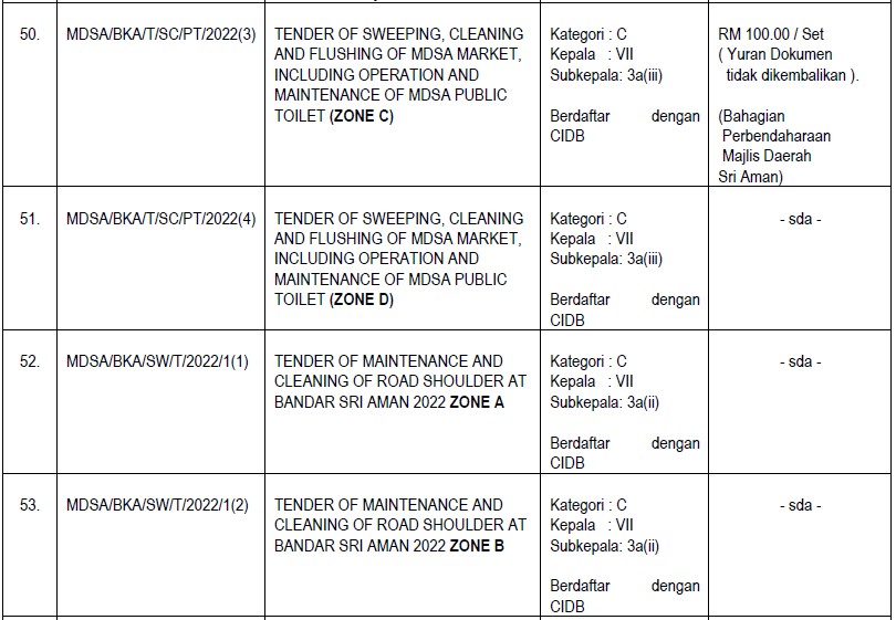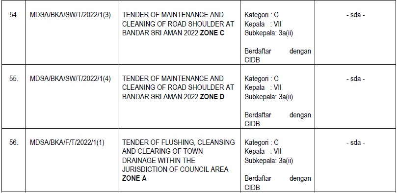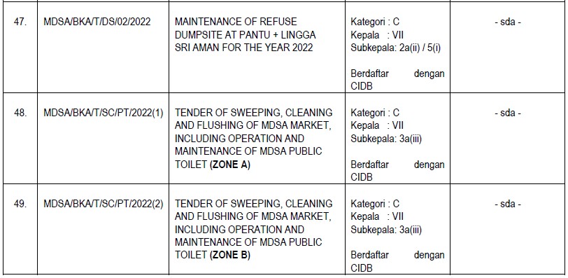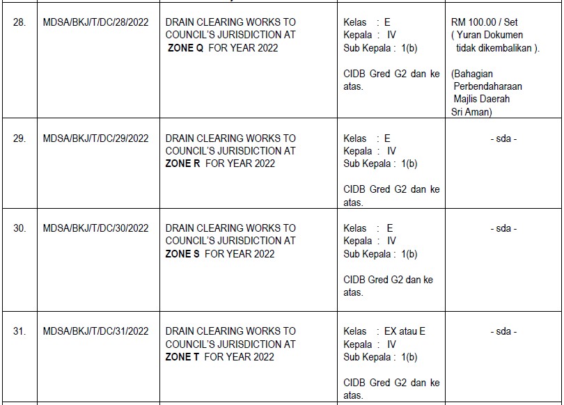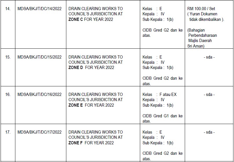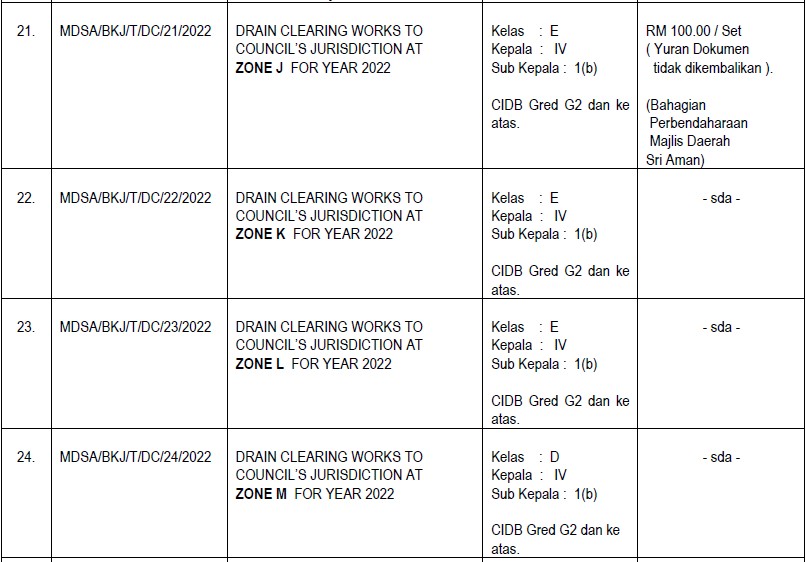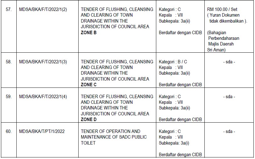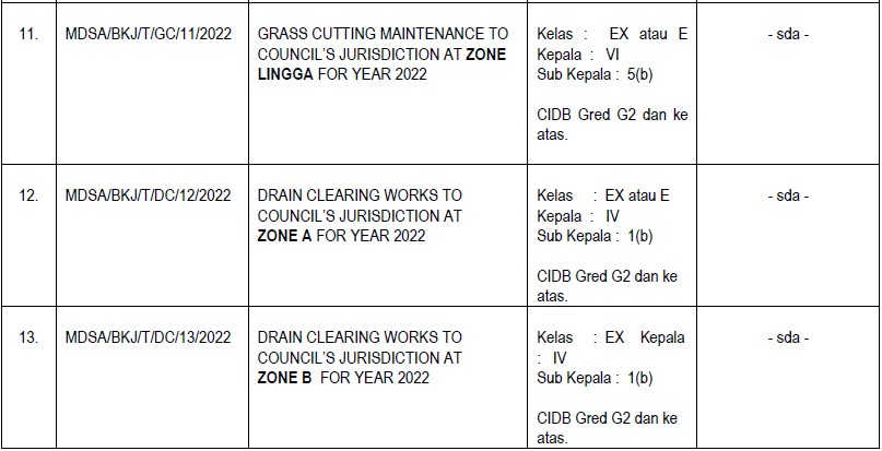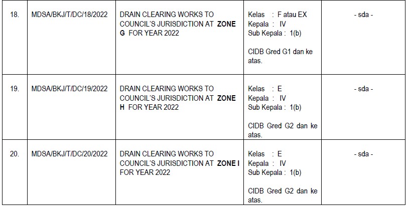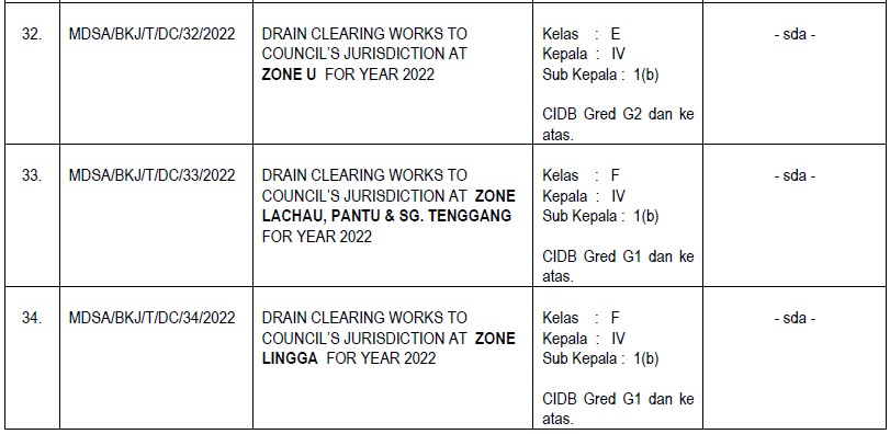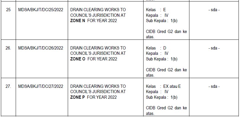 Senarai Kontraktor untuk Kerja - Kerja Pembersihan Longkang