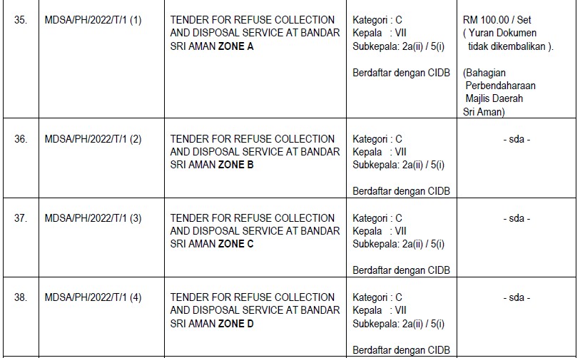 Senarai Kontraktor dan Notis Jadual Kutipan Sisa - Sisa Pepejal Tahun 2025