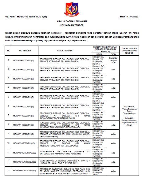 KENYATAAN TENDER