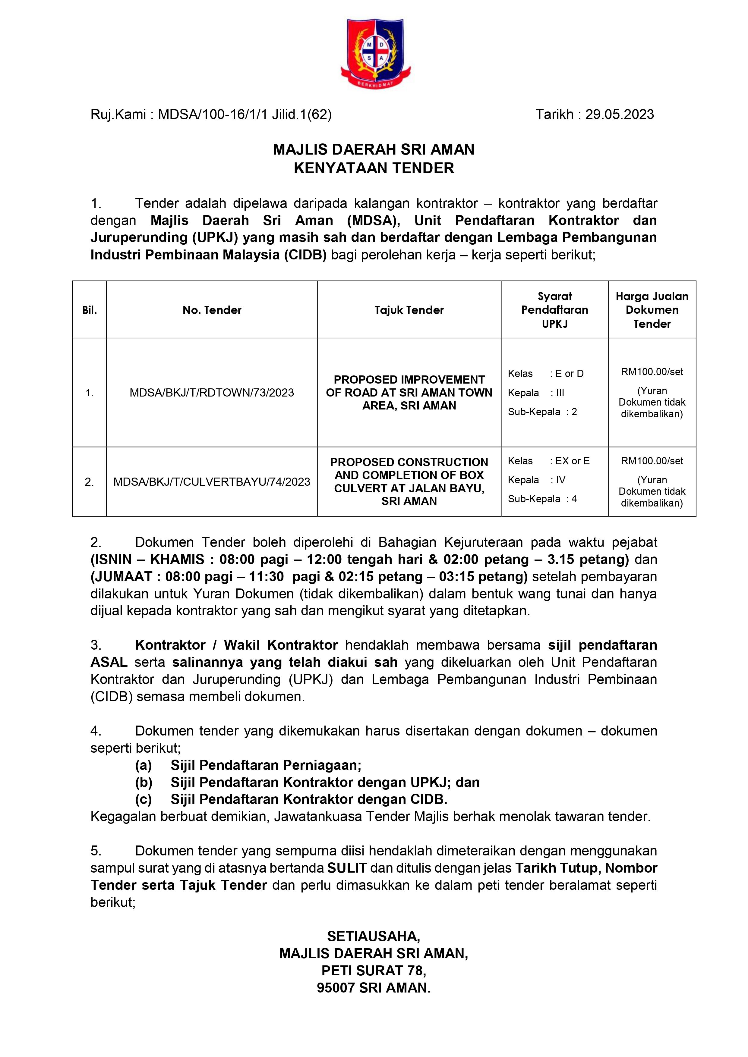 Senarai Kontraktor untuk Kerja - Kerja Pembersihan Longkang