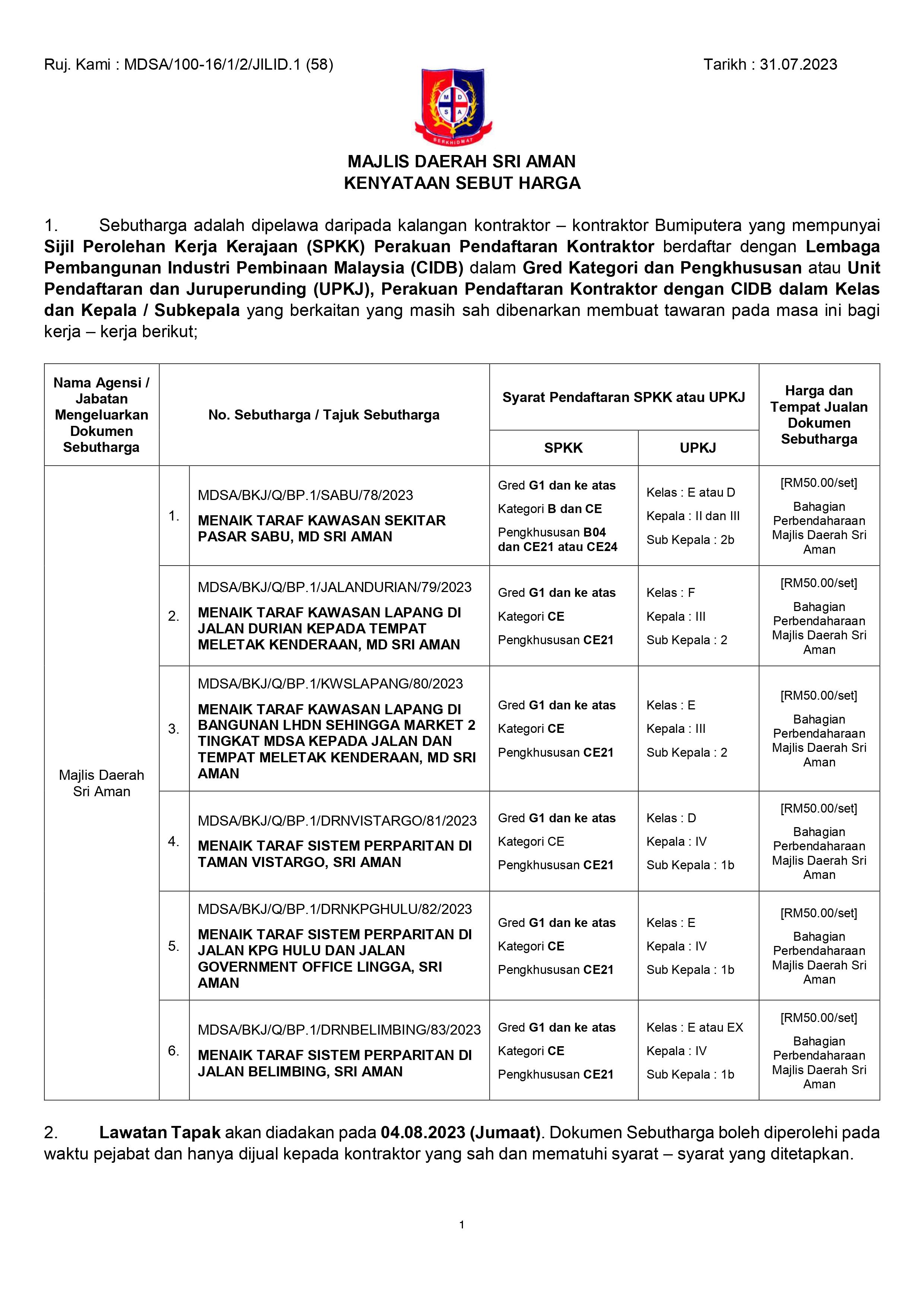 Senarai Kontraktor untuk Kerja - Kerja Pembersihan Longkang