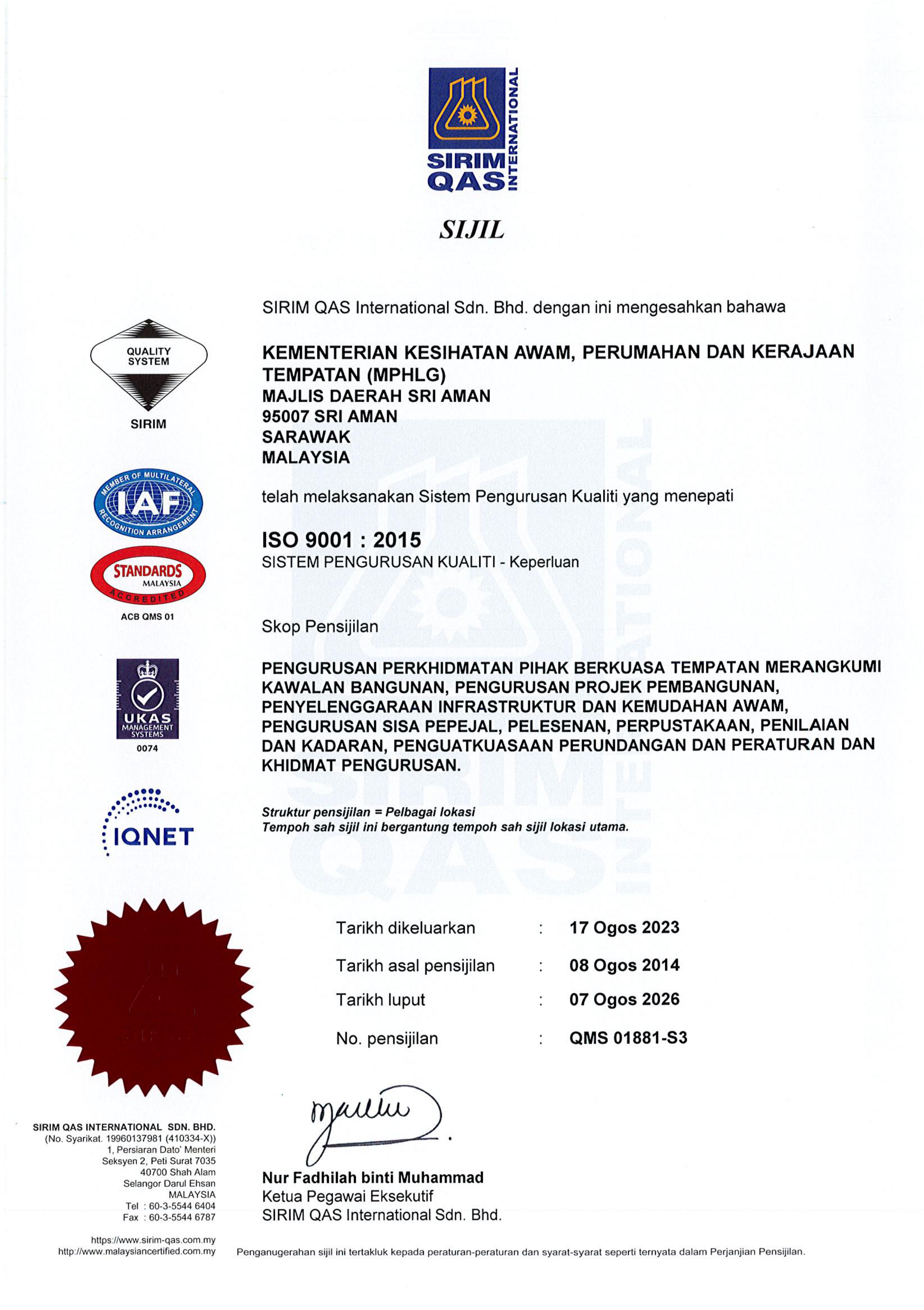 Carta Organisasi Majlis Daerah Sri Aman (S.K.P Bil.P28/2020)