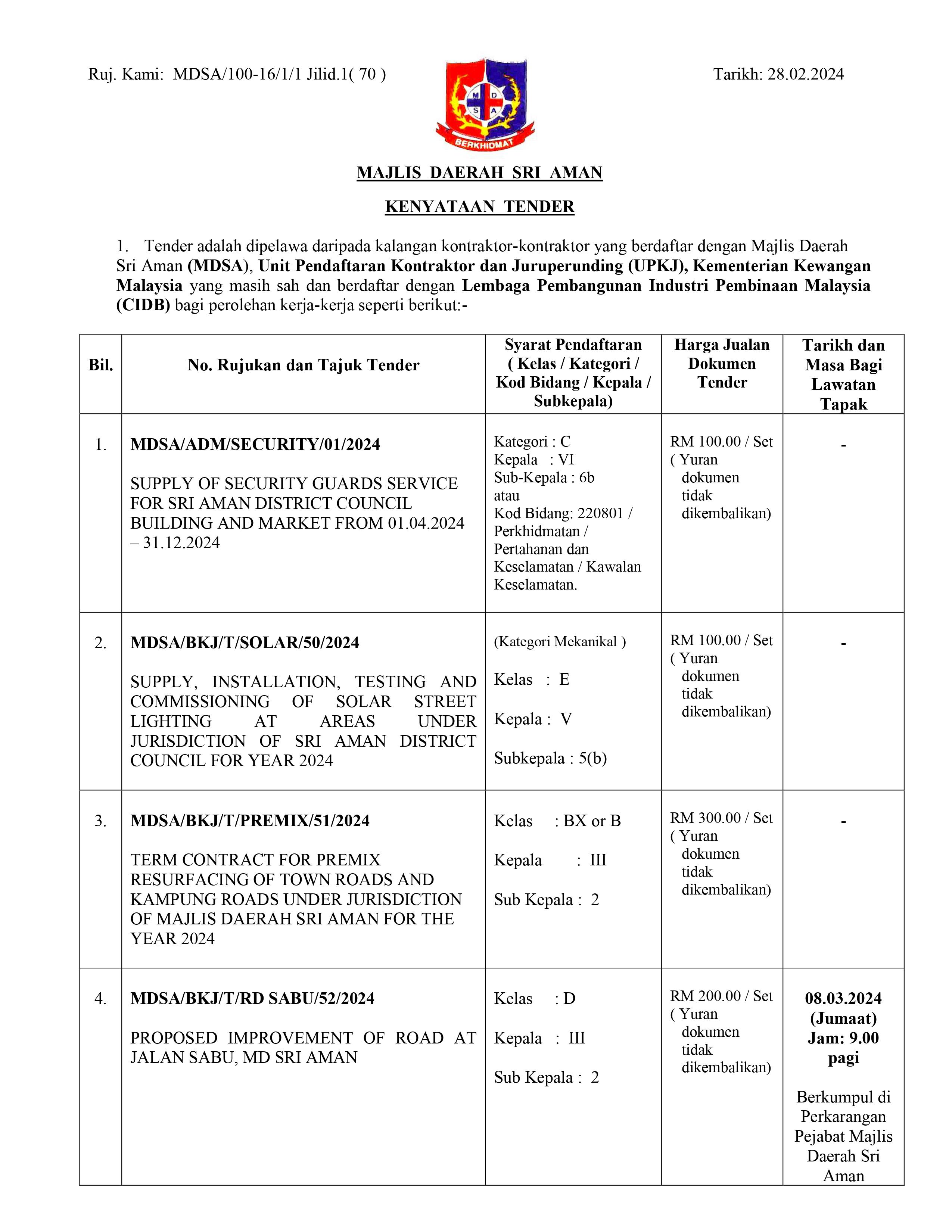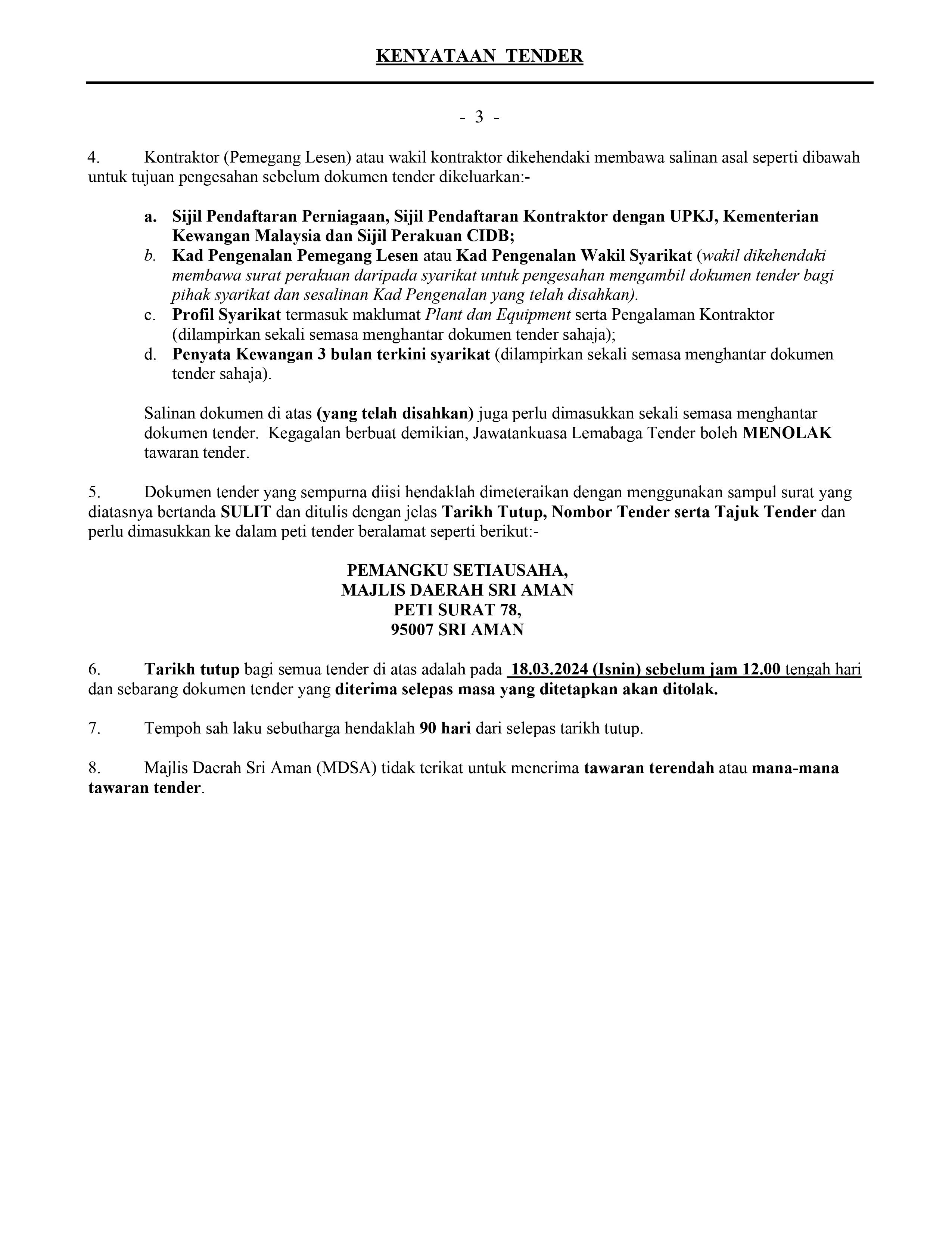 Senarai Kontraktor untuk Kerja - Kerja Pembersihan Longkang