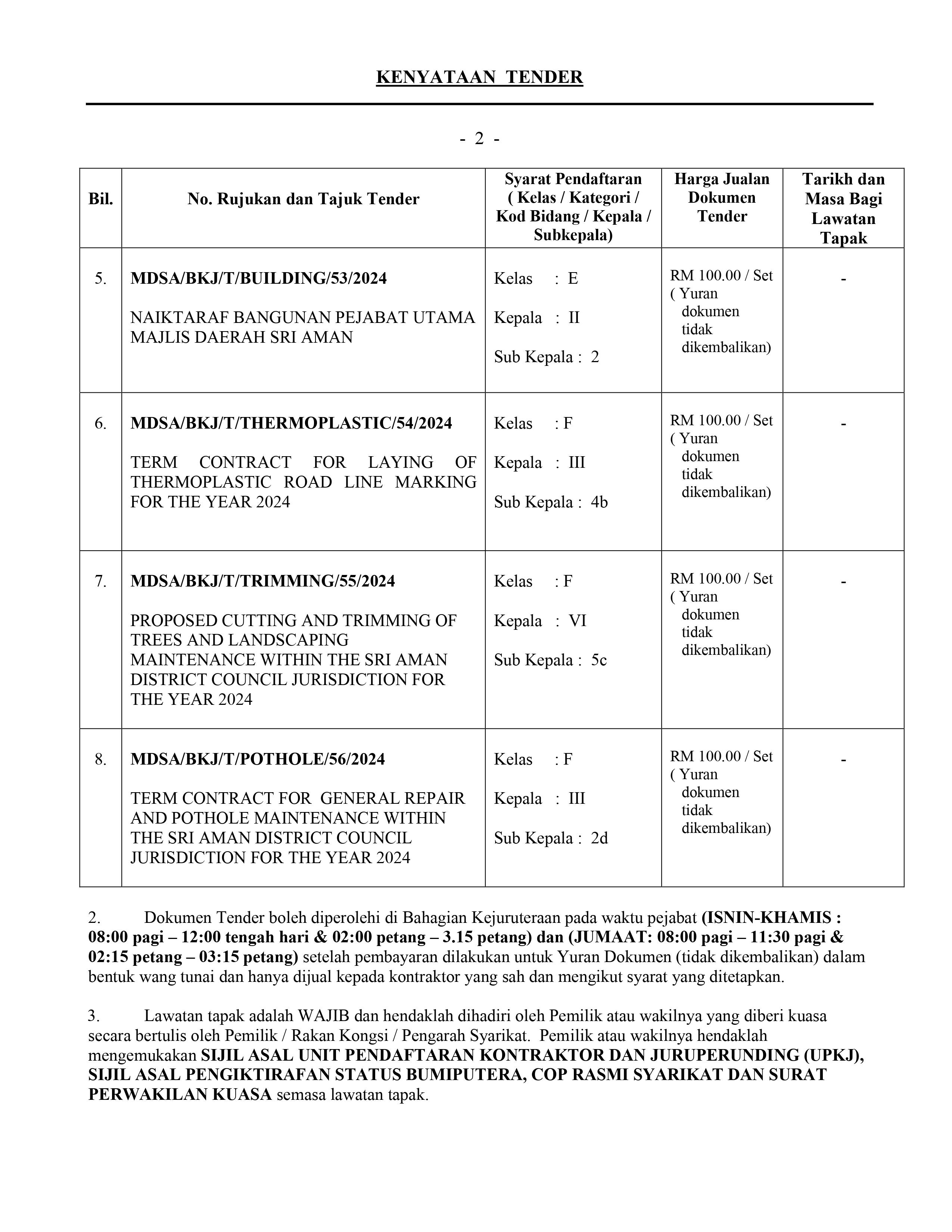 Senarai Kontraktor untuk Kerja Penyelenggaraan Tepi Jalan