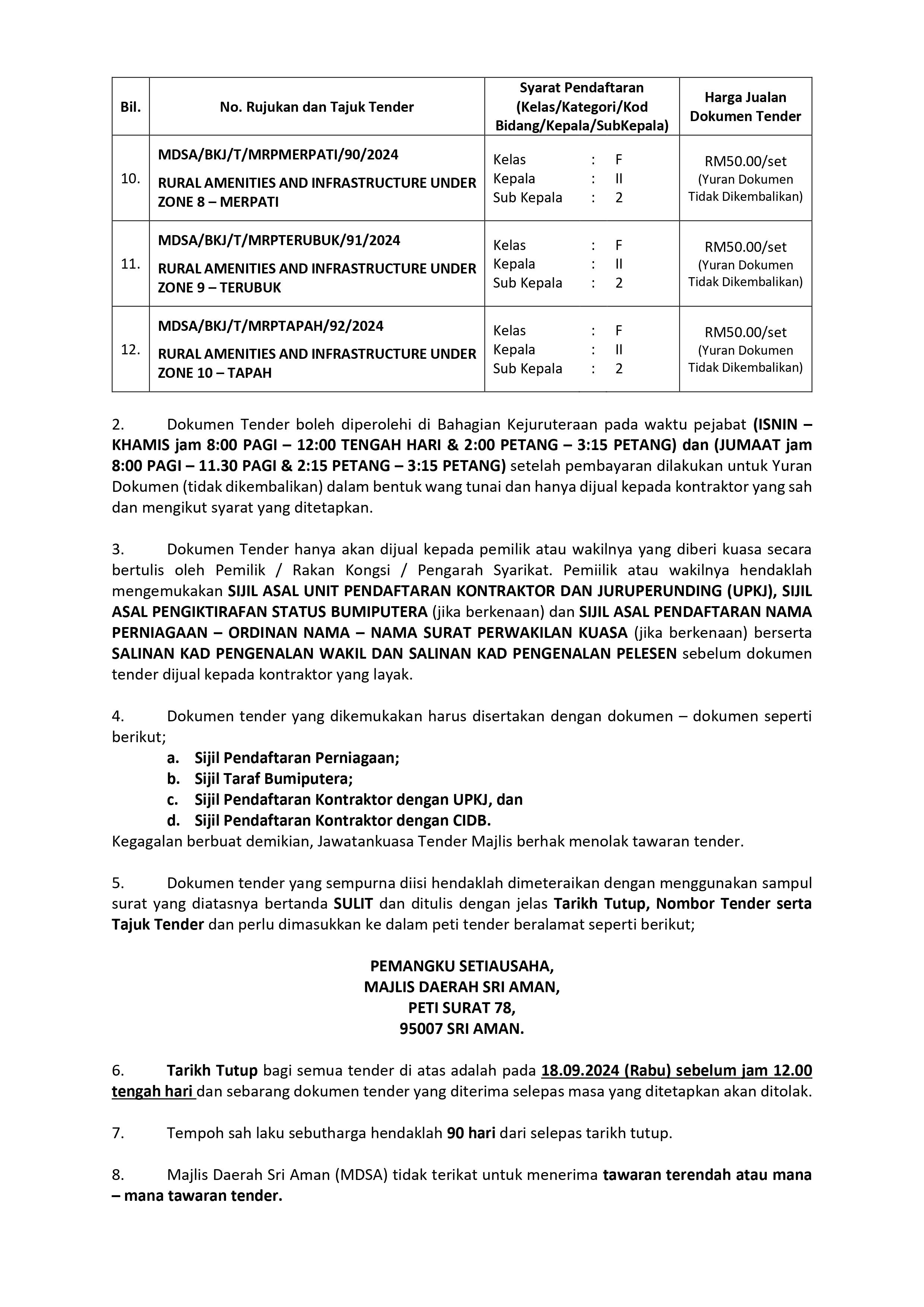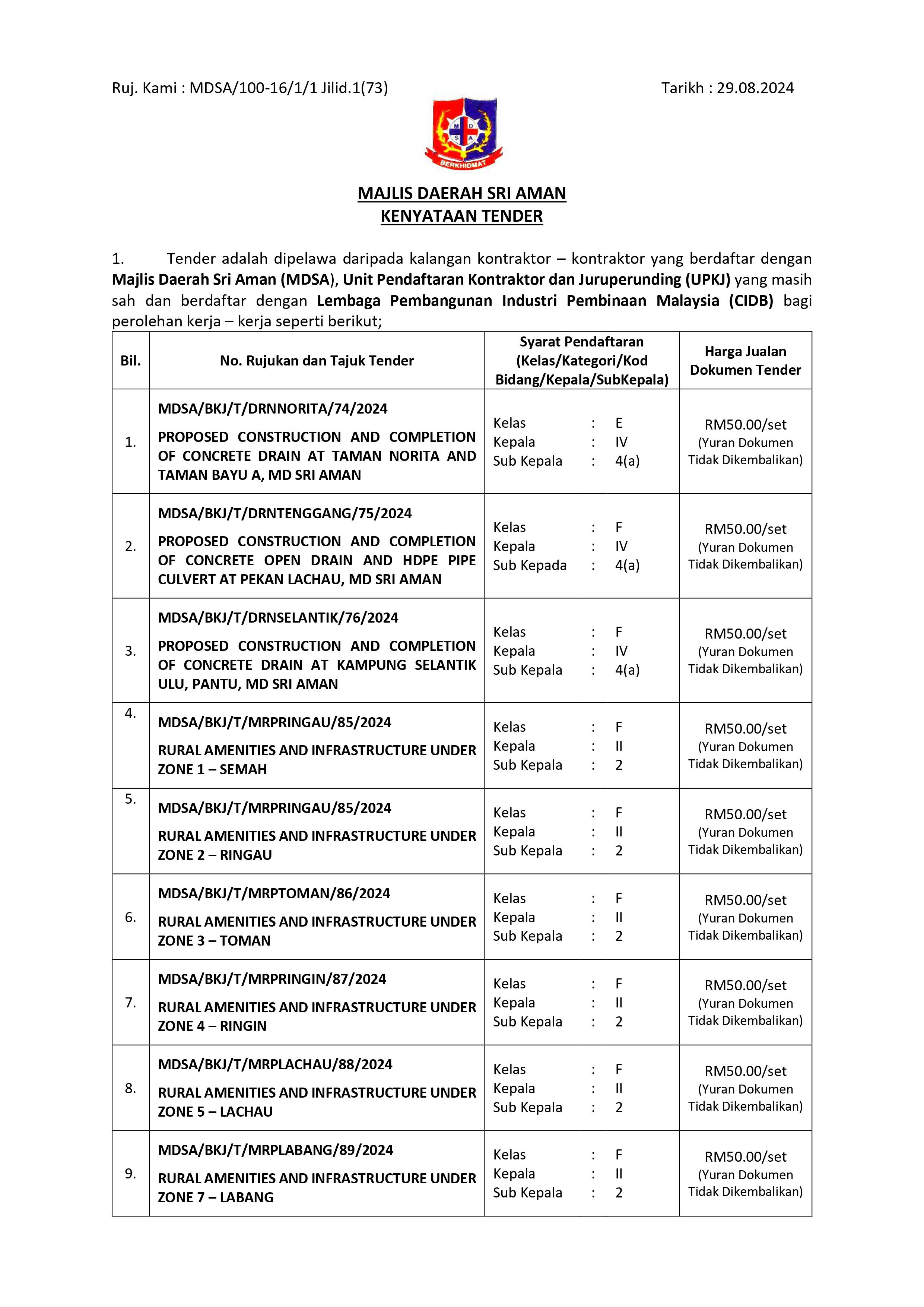 Senarai Kontraktor untuk Kerja - Kerja Pembersihan Longkang