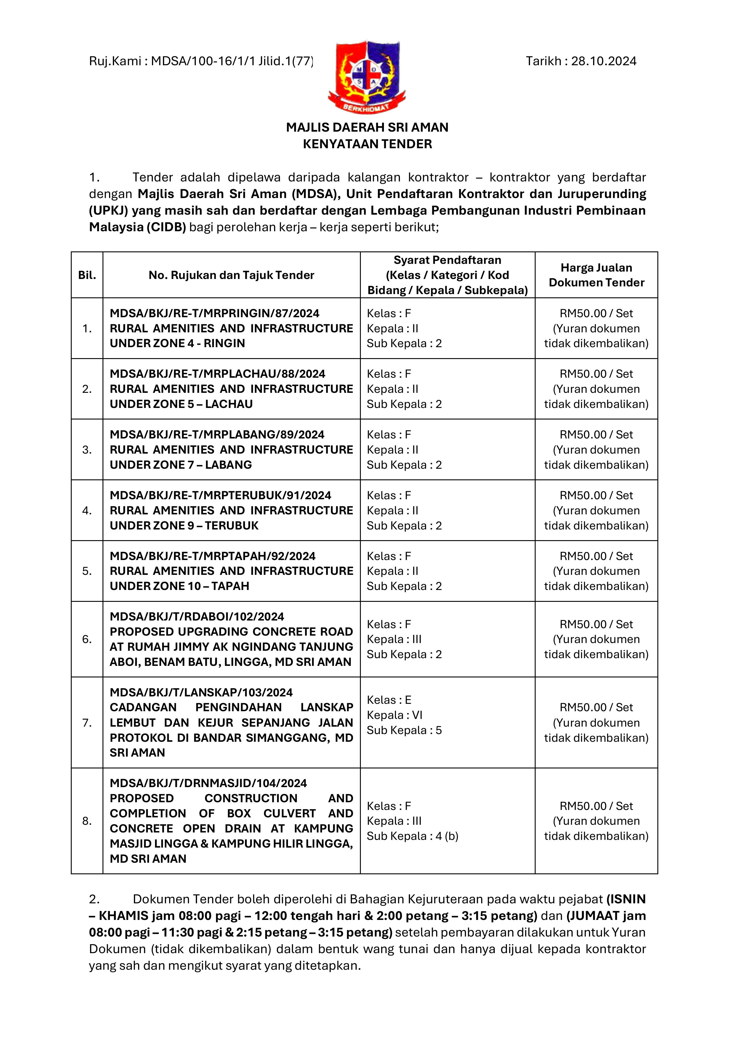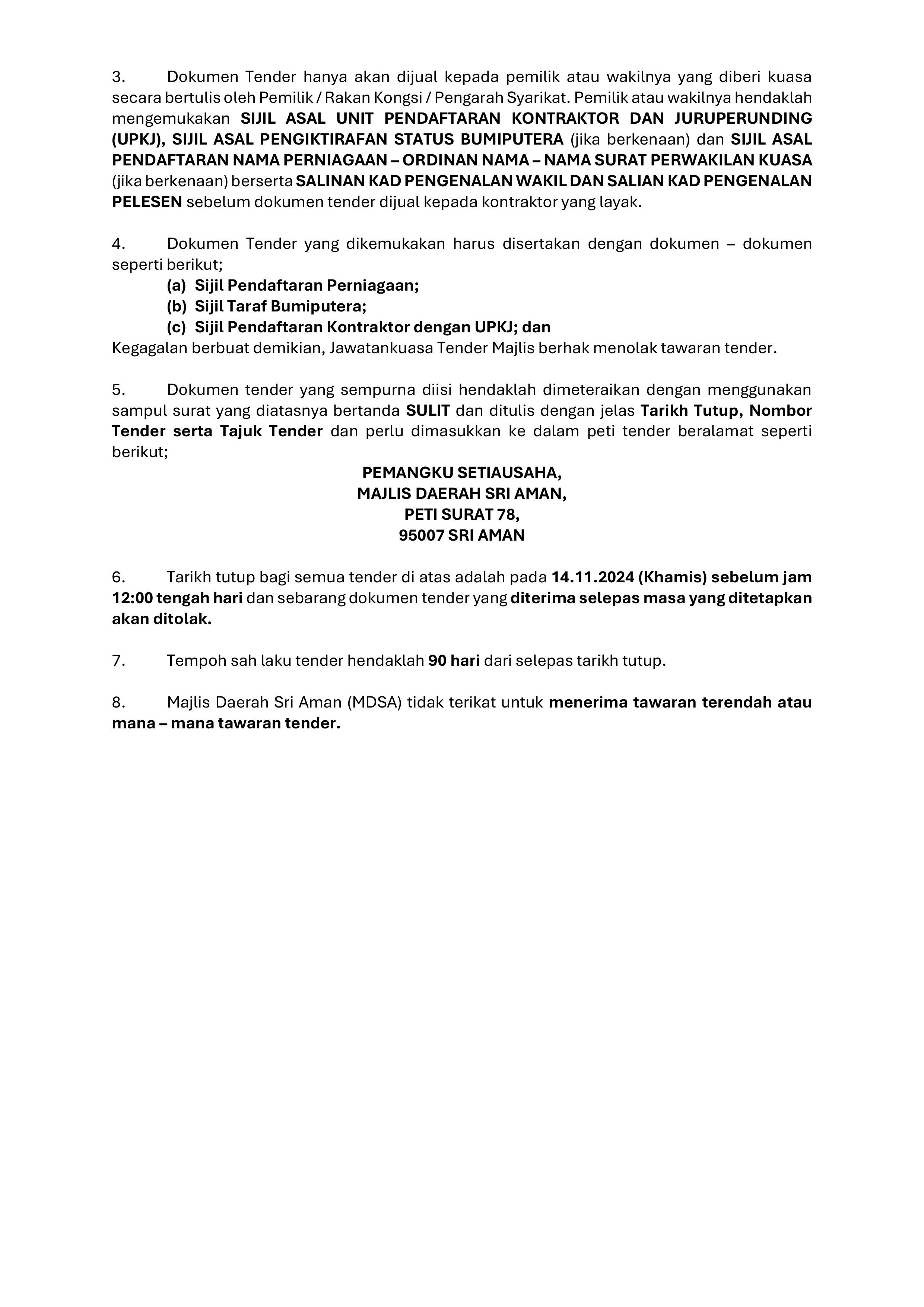 Senarai Kontraktor untuk Kerja - Kerja Pembersihan Longkang