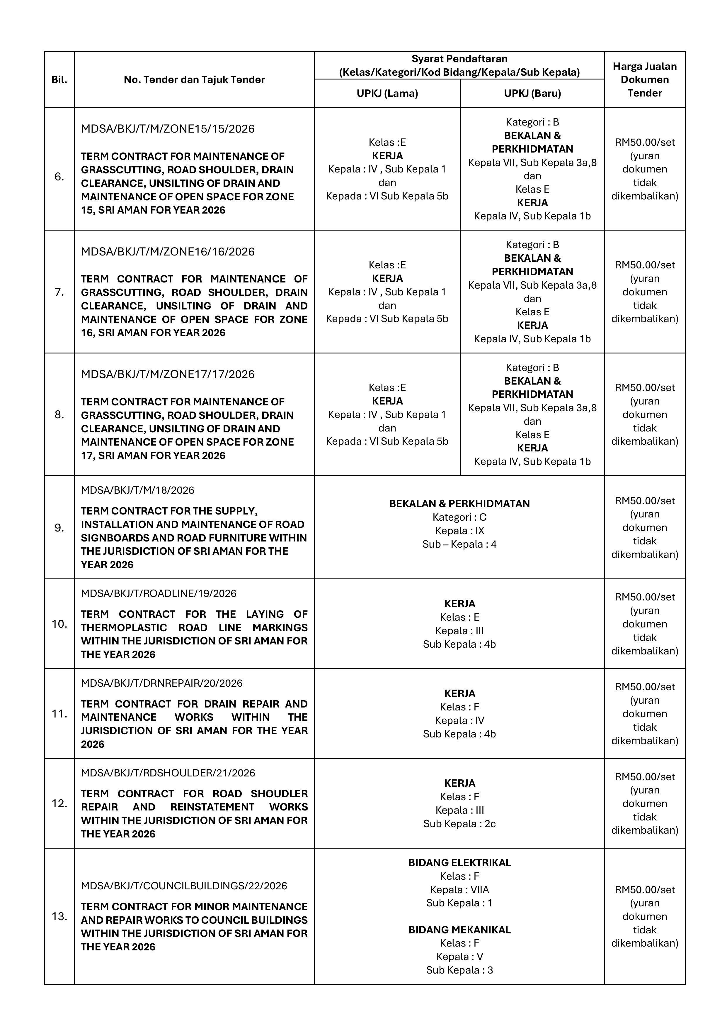 Senarai Kontraktor untuk Kerja Penyelenggaraan Tepi Jalan