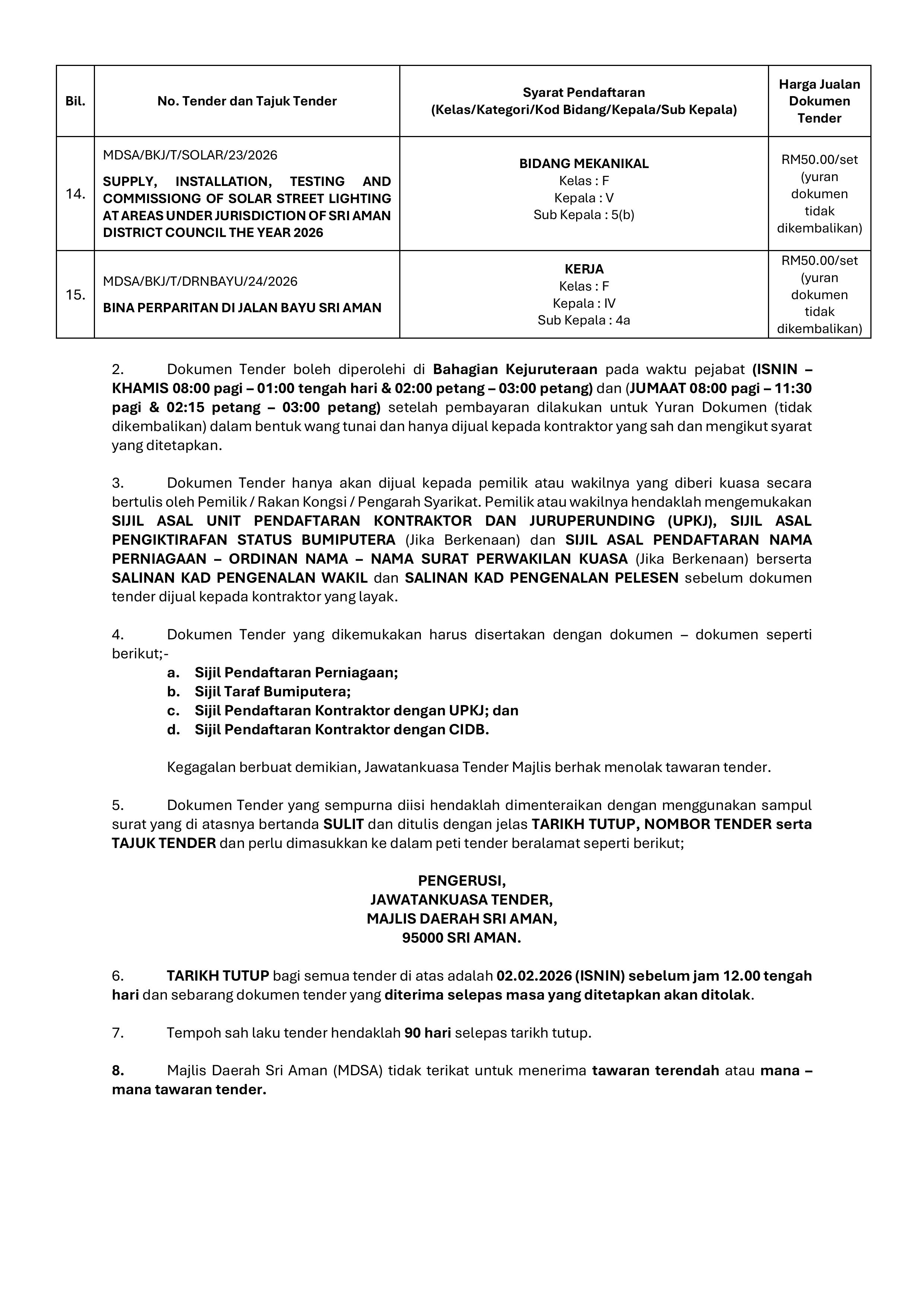 Senarai Kontraktor untuk Kerja - Kerja Pembersihan Longkang